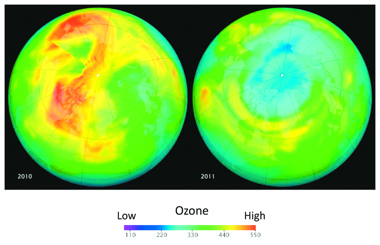 Το άλλο καλό νέο από τις μελέτες του κ. Ζερεφού και των συνεργατών του είναι ότι η πορεία προς την αποκατάσταση του στρώματος του όζοντος βαίνει καλώς. Η αναστροφή, όπως μας εξηγεί, είχε αρχίσει να γίνεται ορατή από το 2000, όμως οι ειδικοί δεν ήξεραν ως πρόσφατα αν θα συνεχιζόταν. Πέρυσι μάλιστα η επιστημονική κοινότητα είχε θορυβηθεί όταν μια μελέτη – πάλι από τον ακαδημαϊκό και συνεργάτες του – είχε διαπιστώσει ότι τον χειμώνα του 2011 σημειώθηκε σημαντική αραίωση του όζοντος (της τάξεως του 20%-25%) σε ολόκληρο το βόρειο ημισφαίριο, από τον Καναδά ως τη Σιβηρία. Οι έλληνες ερευνητές ανακάλυψαν ότι επρόκειτο για μια συνέπεια του φαινομένου του θερμοκηπίου, το οποίο «φυλακίζει» τη θερμότητα στα κατώτερα στρώματα της ατμόσφαιρας κάνοντας τα ανώτερα στρώματα να ψύχονται, με καταστρεπτικές συνέπειες για το όζον. «Αυτό ήταν ένα μεμονωμένο γεγονός, ένας χειμώνας ανώμαλος μέσα σε άλλους χειμώνες» επισημαίνει ο ακαδημαϊκός. «Δείχνει όμως ότι το στρώμα του όζοντος είναι ευάλωτο και στην κλιματική αλλαγή».