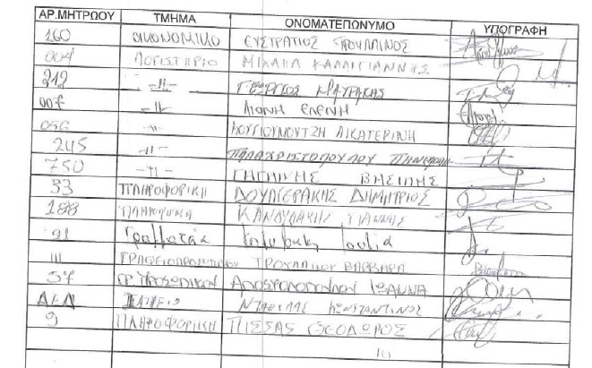 Οι ενυπόγραφοι εργαζόμενοι της εταιρείας: