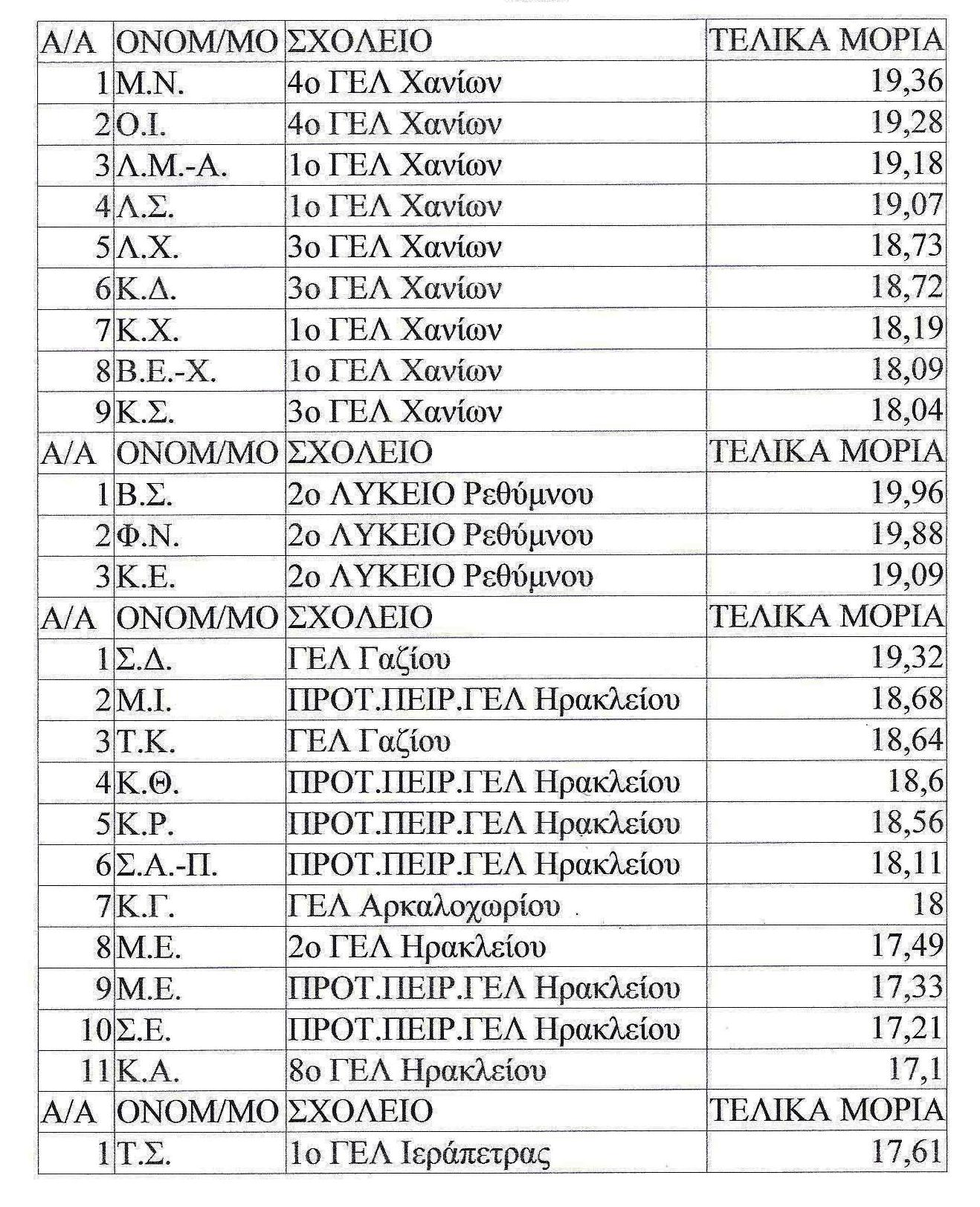 Με την εφαρμογή της ενιαίας βαθμολογίας και άλλοι μαθητές από το Ρέθυμνο προκρίνονται και δίκαια και για αυτούς.