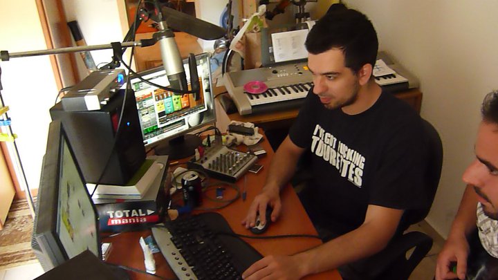 Ο χρόνος και των τριών είναι απίστευτα περιορισμένος, όρεξη να υπάρχει όμως. Ποιος δεν έχει πολλαπλούς ρόλους στους καιρούς μας?.. Τουλάχιστον οι σπουδές μου επαφίενται στο ενδιαφέρον μου! Σημειωτέον ότι επειδή είμαι Κρήτη, ενώ η Μαριάννα είναι Αθήνα, ο Κώστας Πειραιά κτλ, οι πρόβες και τα δοκιμαστικά των κομματιών γίνονται μέσω Skype! Έτσι ανά δυο μήνες συνήθως που όλο και κάποια πολυήμερη αργία προκύπτει, συναντιόμαστε, κλεινόμαστε στο studio μου αρκετές ώρες και… δουλειά!…