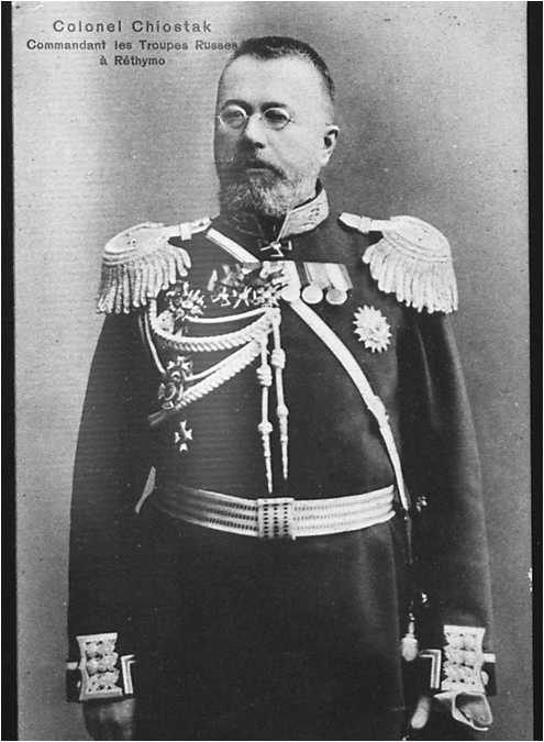 Αμέσως μετά την άφιξη των Μεγάλων Δυνάμεων στην Κρήτη το 1897, ο ρώσικος στρατός ανέλαβε τη διοίκηση του Τμήματος του Ρεθύμνου υπό τις διαταγές του Συνταγματάρχη Θεόδωρου Ντε Χιοστάκ. Οι Ρώσοι, ως ομόδοξοι, έδειξαν πολλές φορές δείγματα συμπάθειας προς τους Ρεθεμνιώτες και μάλιστα, κατά την υπερδεκαετή παραμονή τους στον τόπο κατασκεύασαν πάμπολλα κοινωφελή έργα, όπως δρόμους, γέφυρες, το μητροπολιτικό μέγαρο και την καθολική εκκλησία.