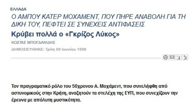 Τρείς ημέρες μετά, στις 9/6/1998, η ίδια εφημερίδα (Τα Νέα) σε δημοσίευμά της επισημαίνει πως «τον πραγματικό ρόλο του 50χρονου Α. Μοχάμεντ, που συνελήφθη από αστυνομικούς στην Κρήτη, αναζητούν τα στελέχη της ΕΥΠ, που συνεχίζουν την έρευνα με απόλυτη μυστικότητα.