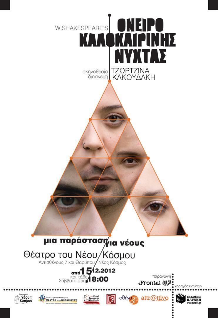Η σκηνοθέτης και θεατροπαιδαγωγός Τζωρτζίνα Κακουδάκη και η οµάδα ω2/4Frontal, σε συνεργασία µε το Πανελλήνιο ∆ίκτυο για το Θέατρο στην Εκπαίδευση, παρουσιάζουν μια πρωτότυπη και ξεκαρδιστική παράσταση βασισμένη στο έργο του W. Shakespeare «Όνειρο Καλοκαιρινής Νύχτας». Ανεξάντλητες πιθανότητες: όνειρα που βγαίνουν αληθινά, μεταμορφώσεις επί σκηνής, ζωντανή μουσική και πολύ πολύ χιούμορ, για μεγάλους και μικρούς.